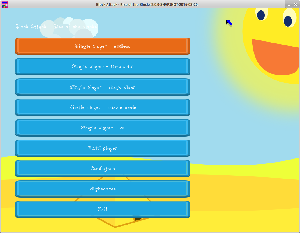 Version 1.1.1 of “Block Attack - Rise of the Blocks” can now be downloaded. It has a new design. Better Puzzle management. Bug fixes. Better controls. Handicap in local multi player. Basic AI (very stupid and very fast). New make file for linux. A starter for linux (can be started by double clicking the starter binary). Does not work in Windows 9x anymore.